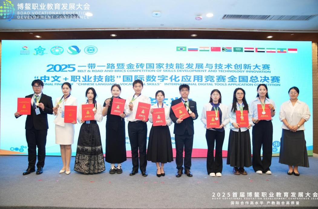 12月6日至8日,2025一带一路暨金砖国家技能发展与技术创新大赛“中文+职业技能”国际数字化应用竞赛全国总决赛于海南博鳌亚洲教育国际会议中心圆满收官。在学院领导的高度关注与鼎力支持下,教育系精心筹备备赛工作。参赛师生凭借扎实的专业素养、精湛的数字化技能,在赛场上奋力拼搏,最终载誉而归。其中,教师组的王文彦老师荣获二等奖;由左琳老师指导的学生组(21五年制小学教育专业韦杰)同样表现优异,荣获二等奖。这一系列佳绩充分展现了我院在“中文+职业技能+数字化工具”融合教育领域的丰硕成果,也彰显了师生积极向上、勇于进取的精神风貌。