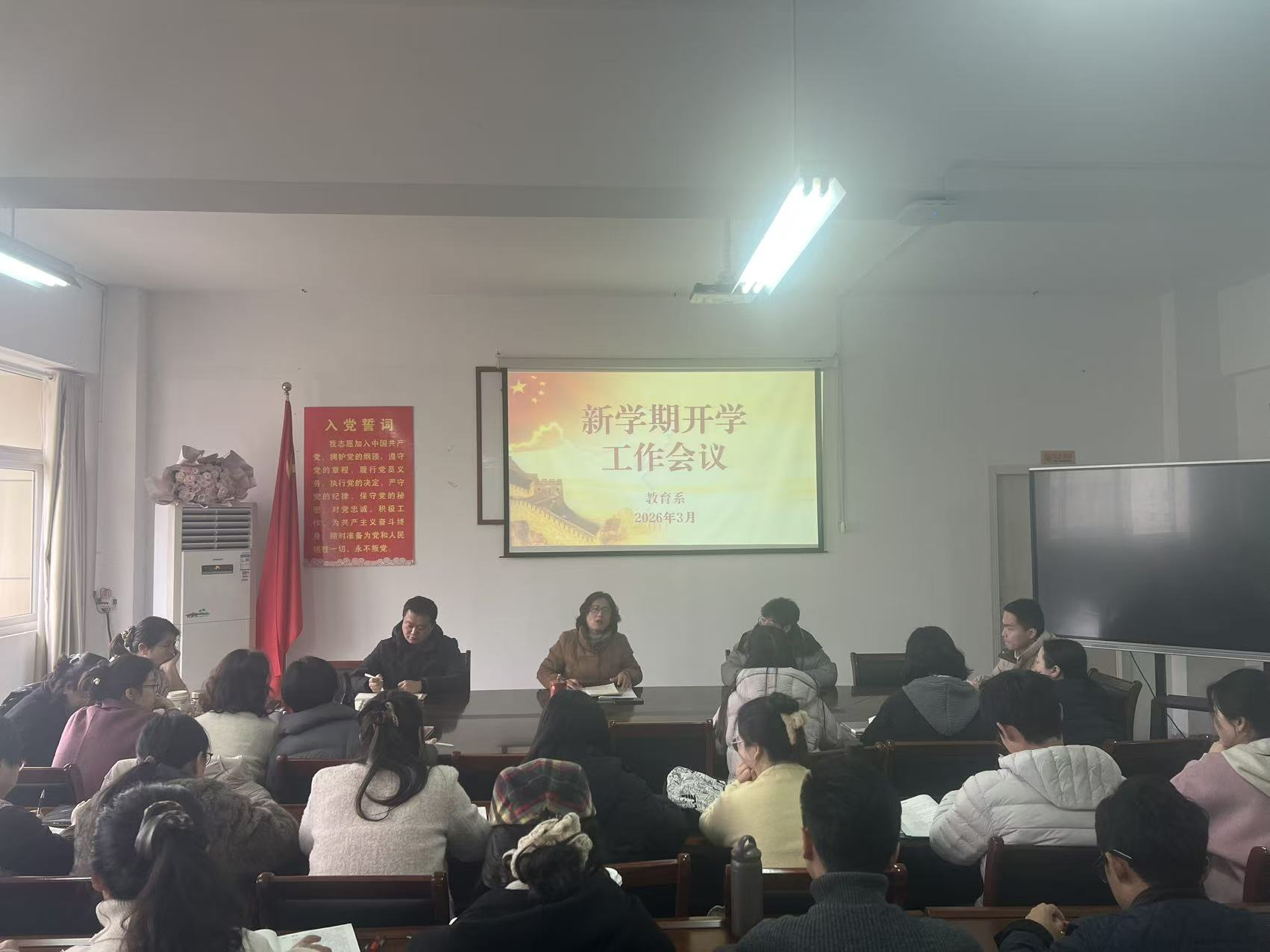 为确保新学期各项工作顺利开展,教育系于3月4日召开新学期开学工作会议。系党政班子成员与全系教职工全体出席,会议由系副主任张永兰主持。