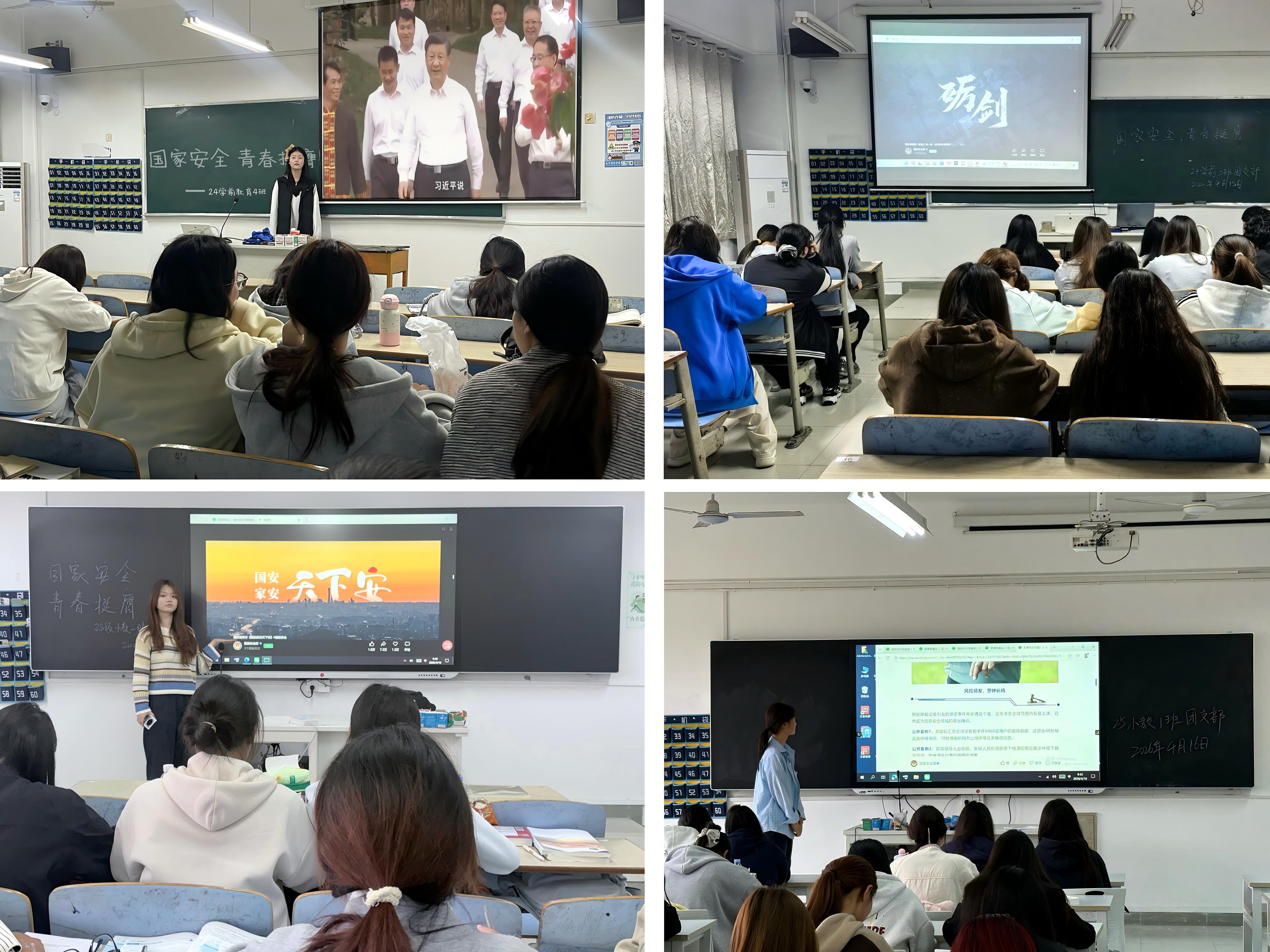 在第11个全民国家安全教育日来临之际,4月15日,教育系团总支组织各班团支部开展“国家安全,青春挺膺”主题团日学习活动,通过多元形式引导青年学子厚植国家安全意识,勇担时代使命。